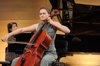 Marei beim Abschlusskonnzert der Meisterkurse 2023 in Oberstdorf. Mit Dimitri Schostakowitsch - Sonate für Vinocello und Klavier in d-moll op. 40 und Chifuyu Yada am Klavier.